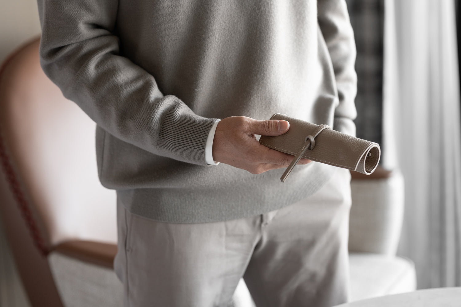 旅行先のホテル、ご自宅、レストランやバーなど、様々なシーンであなたと大切な方の日常を、より上質なものに。巻物のようにコンパクトに収納できるデザインになっていて、 小型バッグにも収まるので持ち運びにとても便利です。